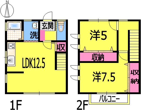 間取り図 お風呂とトイレがセパレート、大容量収納があるお部屋です