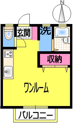 間取り図 お風呂とトイレがセパレート、大容量収納があるお部屋です