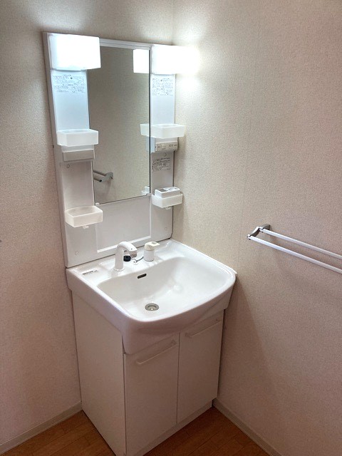 洗面脱衣室 シャワー付き洗面化粧台、室内洗濯機置場