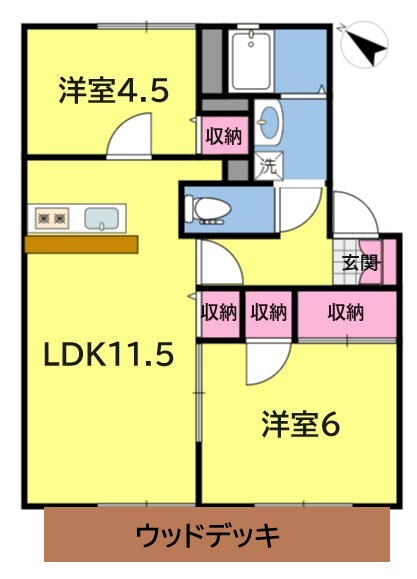 ◆間取り/面積 2LDK(洋室6帖・洋室4.5帖・LDK11.5)/53.28㎡
